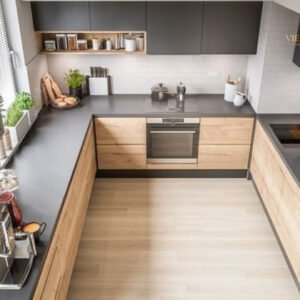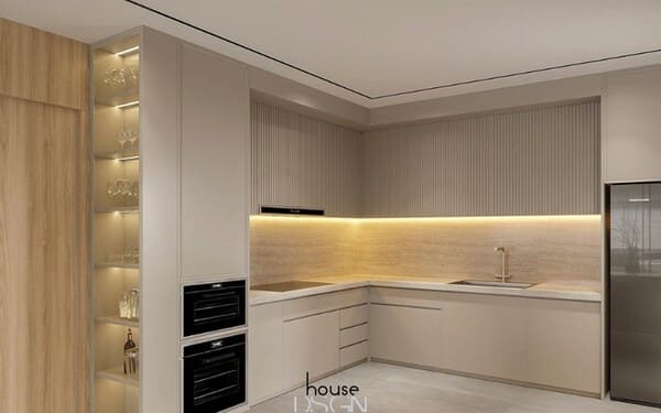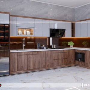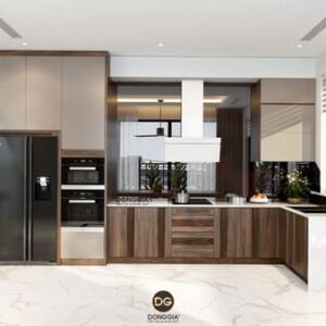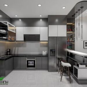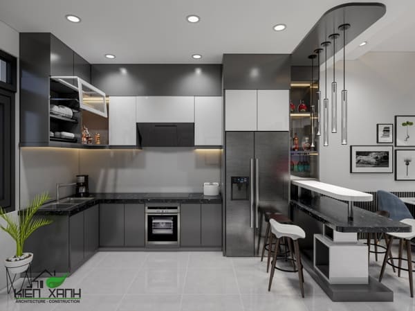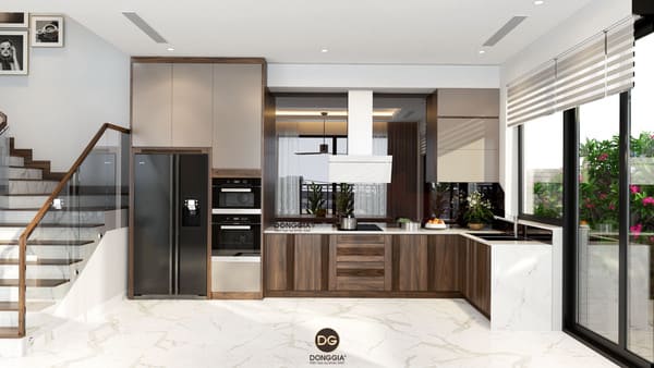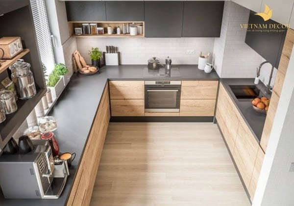 Thiết kế tủ bếp chữ I, L, U hoặc bếp đảo tùy diện tích và mặt bằng.