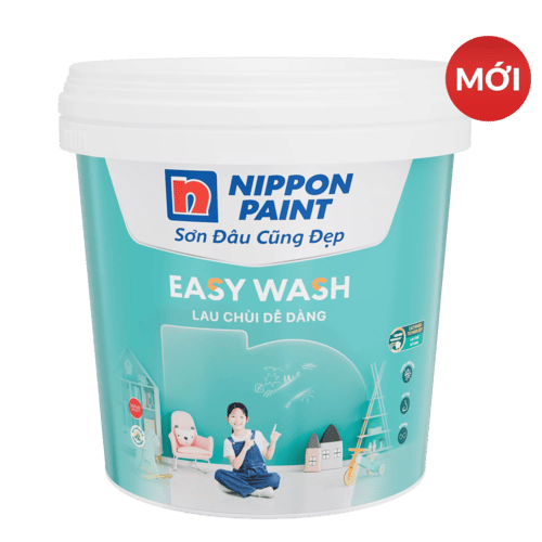 Nippon Paint Easy Wash (đóng gói 5 Lít và 15 Lít) là sơn nội thất cao cấp nổi bật với tính năng dễ lau chùi vượt trội và bề mặt sơn mịn màng, tạo cảm giác nhẹ nhàng, thư giãn. Nhờ công nghệ EZWash, các vết bẩn được làm sạch dễ dàng, giúp không gian luôn gọn gàng, tinh tế mà không cần quá lo chuyện “tường dính bẩn là phải sơn lại”.