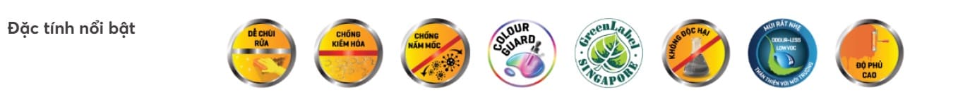Đặc tính Sạch: lau chùi dễ, chịu chùi rửa, bền màu và che phủ tốt
