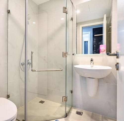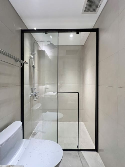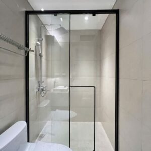 Chúng tôi thi công vách kính phòng tắm Đà Nẵng với nhiều kiểu: mở quay 1 cánh, 2 cánh, cabin góc, cửa lùa… sử dụng kính cường lực 8–10mm, phụ kiện inox chống gỉ, bản lề, kẹp kính, thanh giằng chất lượng cao, đảm bảo an toàn trong quá trình sử dụng.